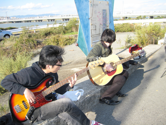 ちっこいアンプ一個しかないから、先生はアコギ持ってきてくれました。