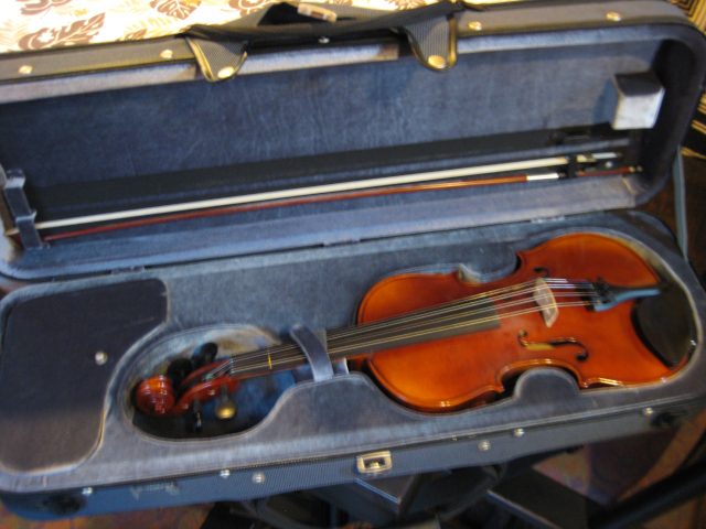 って言い出して、練習用バイオリン(10万円ぐらい)を購入し、一時間ぐらいだけ喜んでギィギィ言わせてたのは知ってたんですが、その後バイオリンを続けてる様子もないし、ウワサも聞かないし、